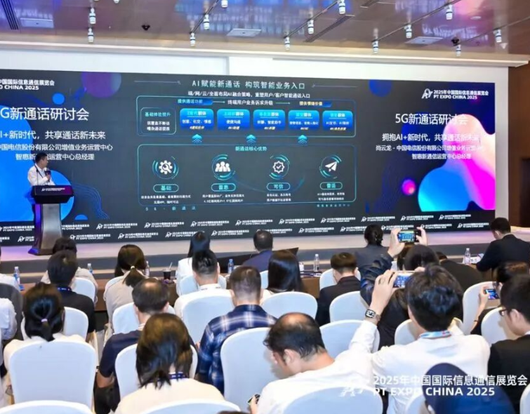 在2025年中国国际信息通信展览会(ICT中国)期间举行的第三届5G新通话研讨会上,来自工信部、信通院、运营商、设备商、终端厂商、行业应用商等产业领袖和行业专家齐聚一堂,共同探讨AI时代下传统通信服务的未来。