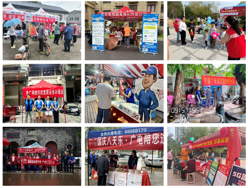 北京歌华有线设点推4K 体验和机顶盒置换;上海东方有线 16 区设摊超 300 场,入户演示超高清与 AI 功能;江苏广电 200 余商圈社区设观赛点,同步推套餐。重庆广电深入社区乡村,借 “渝超” 引流;陕西广电 “国庆八天乐” 把服务送进社区景区;湖北广电结合文旅赛事做推广。河北广电推 4K 频道与机顶盒预售,帮特殊群体减免;天津广电党员进社区设 “总经理服务岗”,搞战队 PK;湖南广电多片区下沉实现 “全链条速达”。山东广电推融合套餐,用无人机赋能;海南广电设点推靓号、机顶盒置换;宁夏广电员工当 “移动服务站”;贵广网络把服务延伸到偏远村寨。