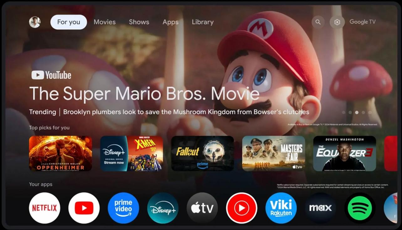 图 1: 现代智能电视界面—集成频道导航与个性化推荐布局示意。