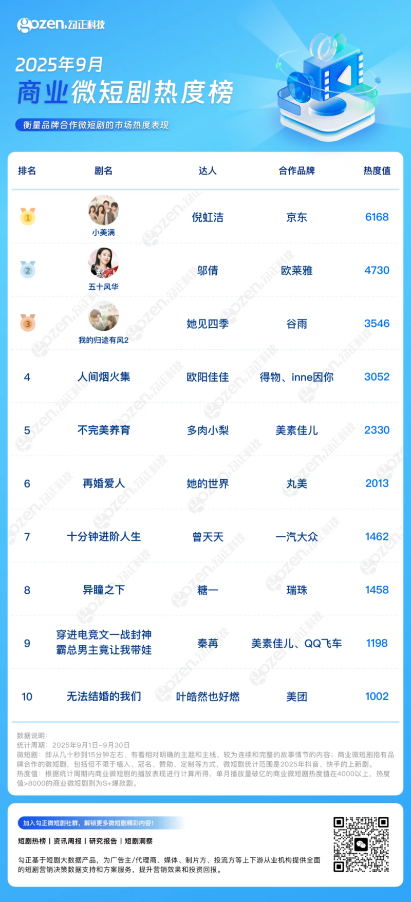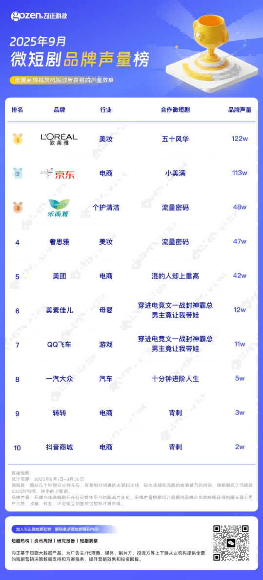 - [勾正科技] 短剧榜单|品牌跨界联投解锁新价值:美妆,电商强势领跑 2025-10-14