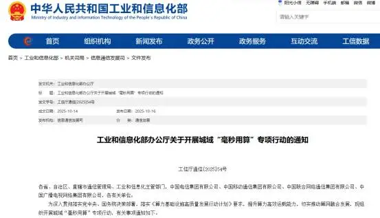 10月16日,据工业和信息化部消息,近日印发通知,部署开展城域“毫秒用算”专项行动。