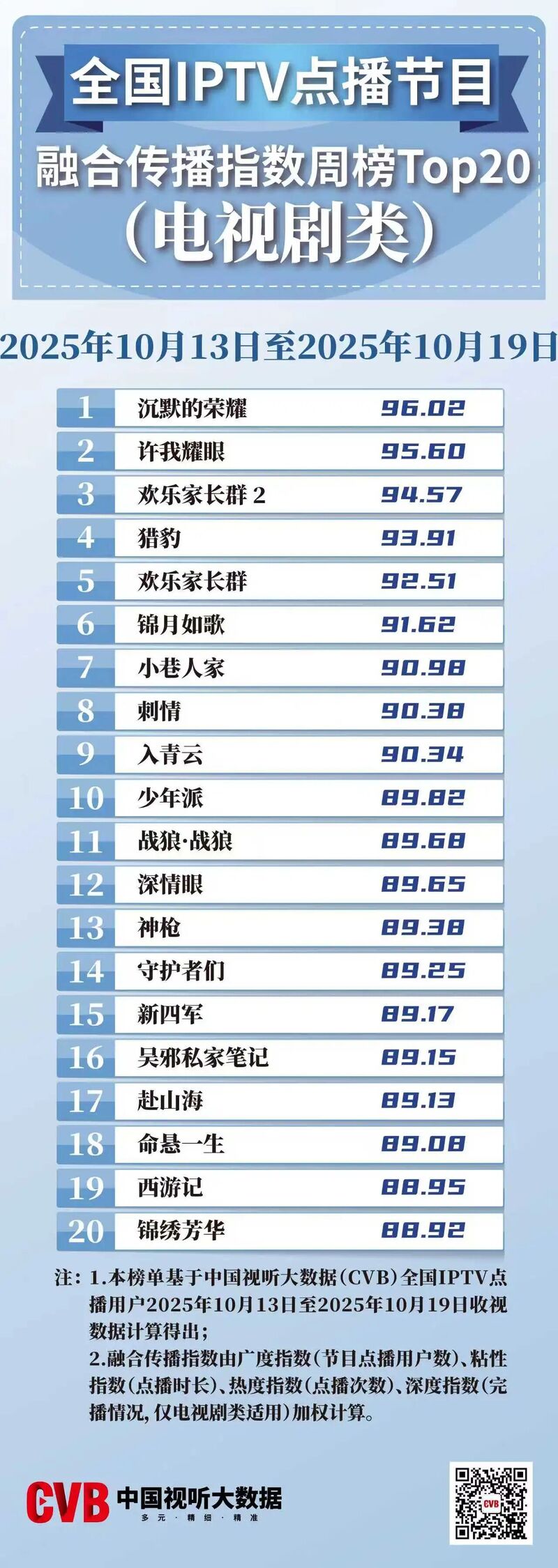 全国IPTV点播节目融合传播指数周榜Top20(电视剧类)【10月13日-10月19日】