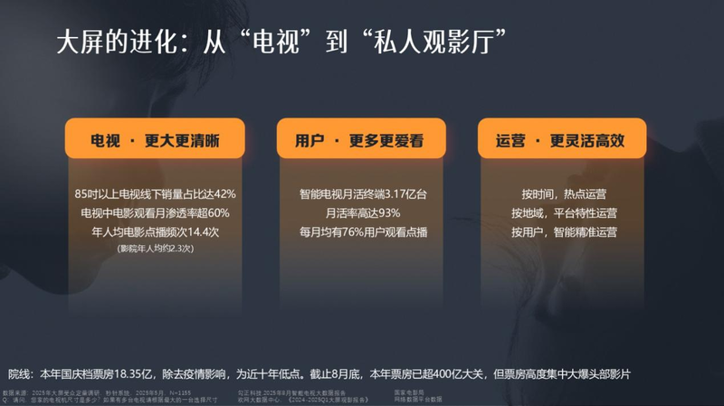 在此背景下,“院线+大屏”双轨并行,正共同构成电影从上映到长尾运营的完整生命周期。