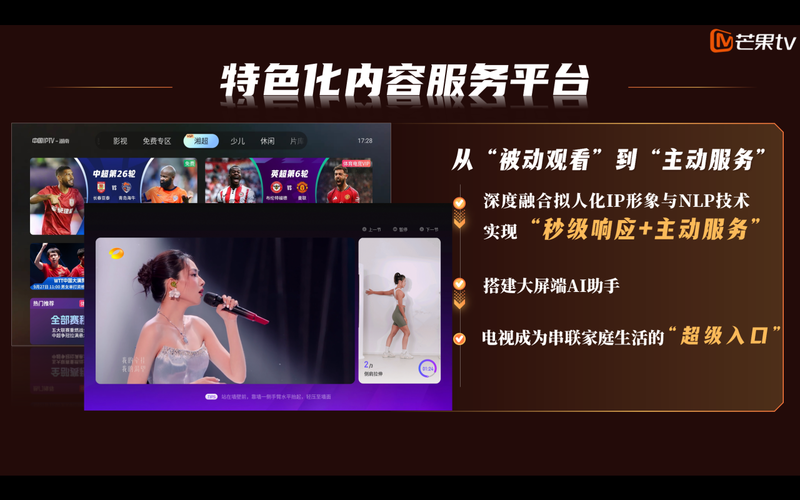 芒果TV尝试打破大屏“单一娱乐”定位,通过技术整合与资源联动,将其升级为聚焦家庭核心需求的“特色化内容服务平台”,让大屏服务“有用且好用”。未来,芒果TV计划进一步深化场景价值:深度融合拟人化IP形象与NLP技术,实现“秒级响应+主动服务”,精准捕捉老人健康提醒、孩子教育需求等潜在诉求;搭建大屏端AI助手,提供家电控制、生活服务预约等功能,让电视从孤立终端转变为串联家庭生活的 “超级入口”。