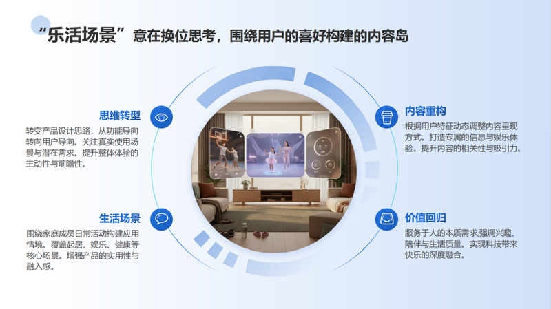 上述探索的共同目标是什么?是迈向“用户思维”。我们思考的是:当硬件和系统为我们搭建起如此先进的“舞台”后,何种“内容”才能真正吸引用户驻足?我认为,它应当是父亲与儿子的虚拟球场,是母亲与女儿的私人舞房,是全家人的健康顾问,是每一个平凡日子里那最温暖、最确定的美好时光。这场大屏的“升维战”,其最终的竞争领域并非在于参数指标, 并非存在于跑分软件之中,它实则处于充满人间烟火气的小小客厅之间,基于这一初心。