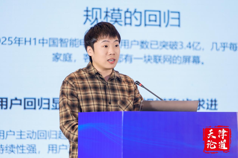 截至2025年上半年,中国智能电视激活用户数量已突破3.4亿,几乎每个中国家庭的客厅中都配备了一块联网屏幕。其呈现出两个显著特点:其一,用户主动回归的趋势显著且具有较强的持续性,这体现了用户对大屏体验的重新认可与依赖;其二,在互联网用户数量普遍趋于饱和的情况下,2025年上半年智能电视终端规模较去年同期增长了5.4%。