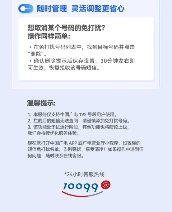对于中国广电而言,此次短信免打扰功能的上线,是完善用户体验的重要一步。后续更要持续深化技术研发、优化服务细节,这将是我们在5G市场中巩固并扩大差异化优势的关键。,同时推动整个行业向“以用户为中心” 的服务本质回归。