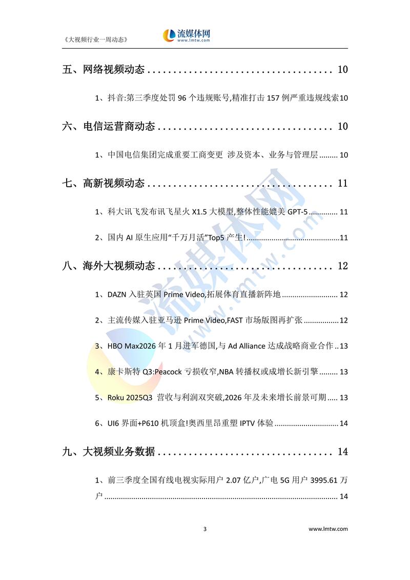 【下载】大视频行业一周市场动态汇总(2025.11.01-11.07)