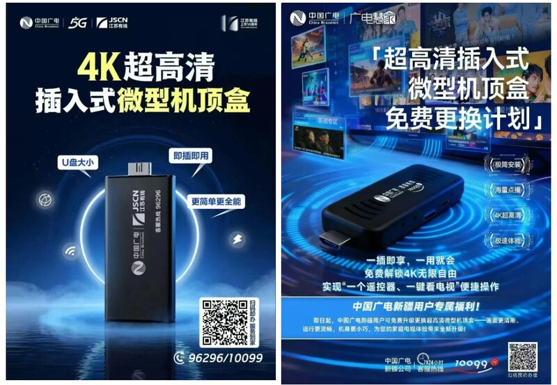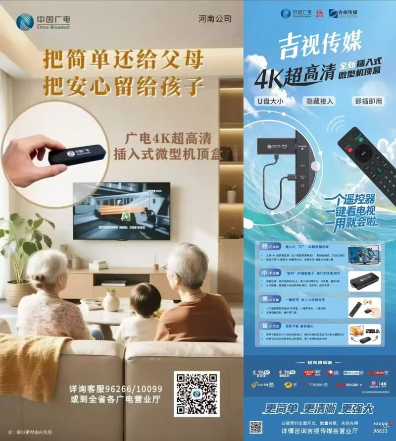 尤其值得注意的是,宣传片中展示的正是目前广电行业正在大力推进的超高清插入式微型机顶盒。