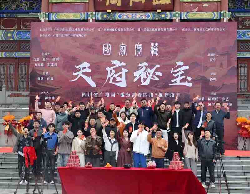 4月21日,由遂宁市新城建设投资有限公司,联合北京中传万卷文化发展有限公司、成都云上新视听文化传媒有限公司共同投资出品,网络微短剧《国家宝藏之天府秘宝》,在市河东新区开机。《国家宝藏之天府秘宝》讲述了故宫文物修复师陈凤为寻找失踪的考古学家父亲,循着张献忠宝藏的隐秘线索,与市井相术少年金九阳、神秘收藏家段水流结伴同行,展开一场惊险交织的国宝守护之旅。剧情融合历史考据、悬疑解谜、动作冒险与家国情怀,在层层反转中揭开境外势力觊觎中华文物、妄图篡改历史的阴谋,生动展现当代青年守护文化根脉、还原历史真相的责任与担当。