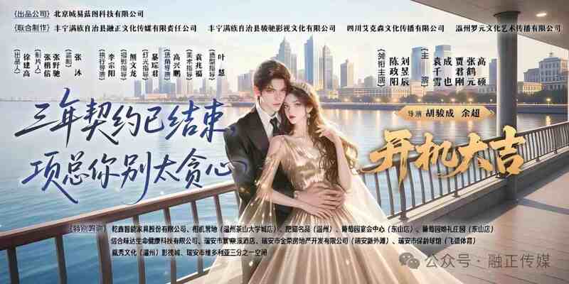 4月22日,由北京城易蓝图科技有限公司出品,丰宁满族自治县融正文化传媒有限责任公司、丰宁满族自治县骏驰影视文化有限公司、四川艾克森文化传播有限公司及温州罗元文化艺术传播有限公司联合制作的,现代都市题材短剧《三年契约已结束,项总你别太贪心》,在浙江温州正式开机。
